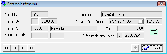 Šípky v dolnej ľavej časti formulára umožňujú rýchle prezeranie jednotlivých tržieb. Náhľady na záznam sa zobrazujú jeden za druhým vzostupne alebo zostupne podľa dátumu a času prijatia tržby.