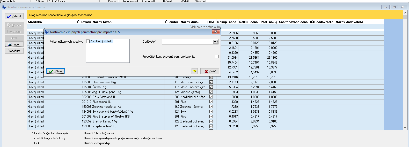 Funkcia umožňuje kontrahovaných cien z xls súboru. Cena sa importuje na základe čísla tovaru. Pri importe je potrebné/možné zadať: