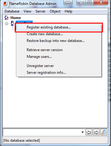V submenu Localhost je potrebné pravým tlačidlom myši vyvolať popup menu a zvoliť Register existing database